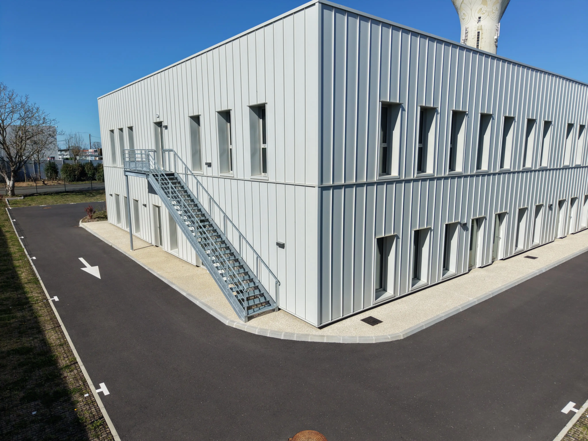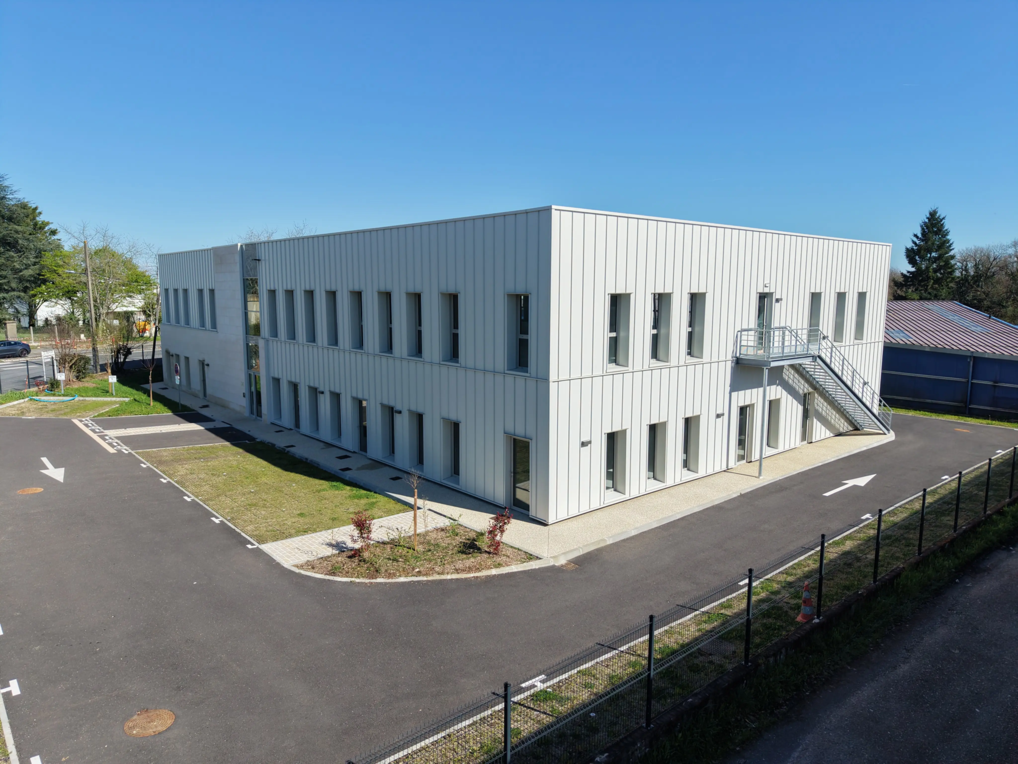 Ce bâtiment d’une superficie totale de 1563m2 construit sur deux niveaux, est équipé d’un ascenseur, d’un accès adapté aux personnes à mobilité réduite et offre une trentaine de places de stationnement, y compris des emplacements dédiés aux personnes handicapées.
